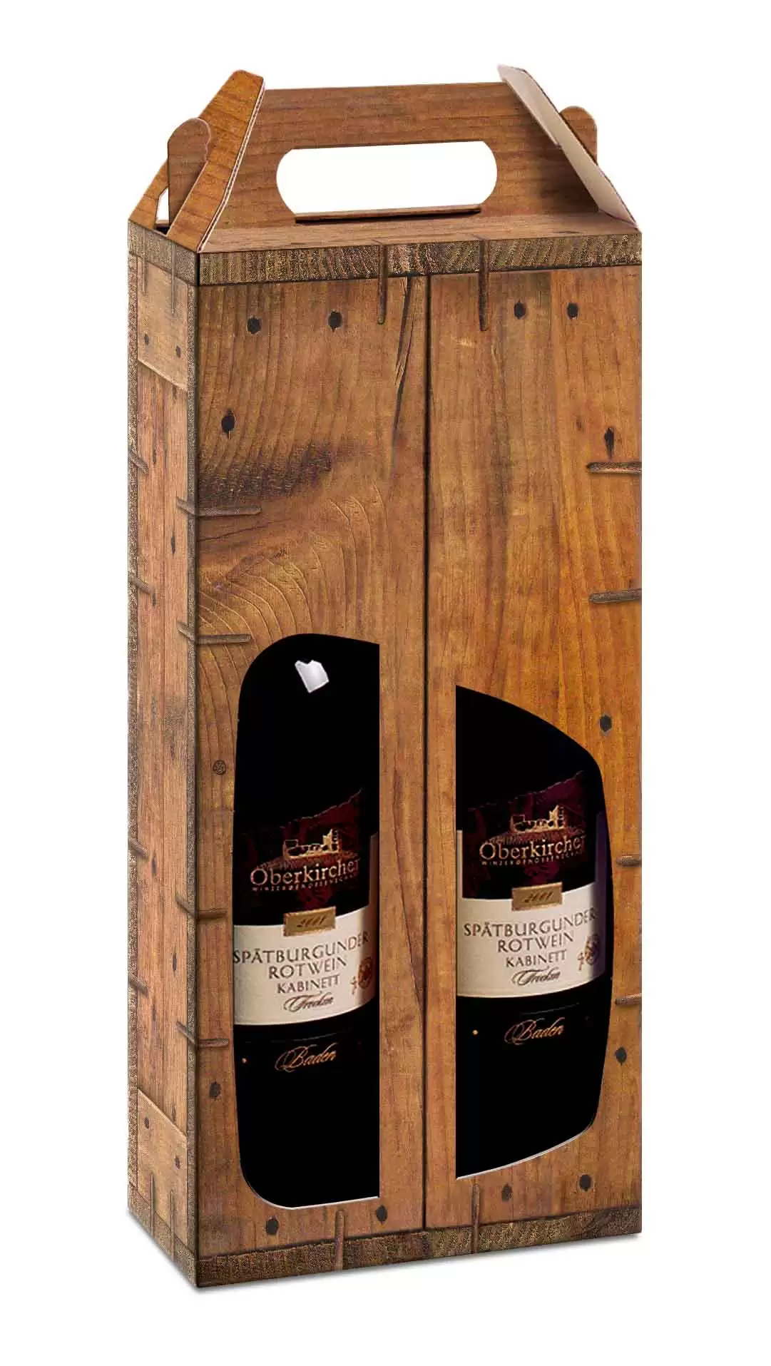 Etui portable avec aspect, détails et toucher bois véritable. Avec grandes fenêtres.