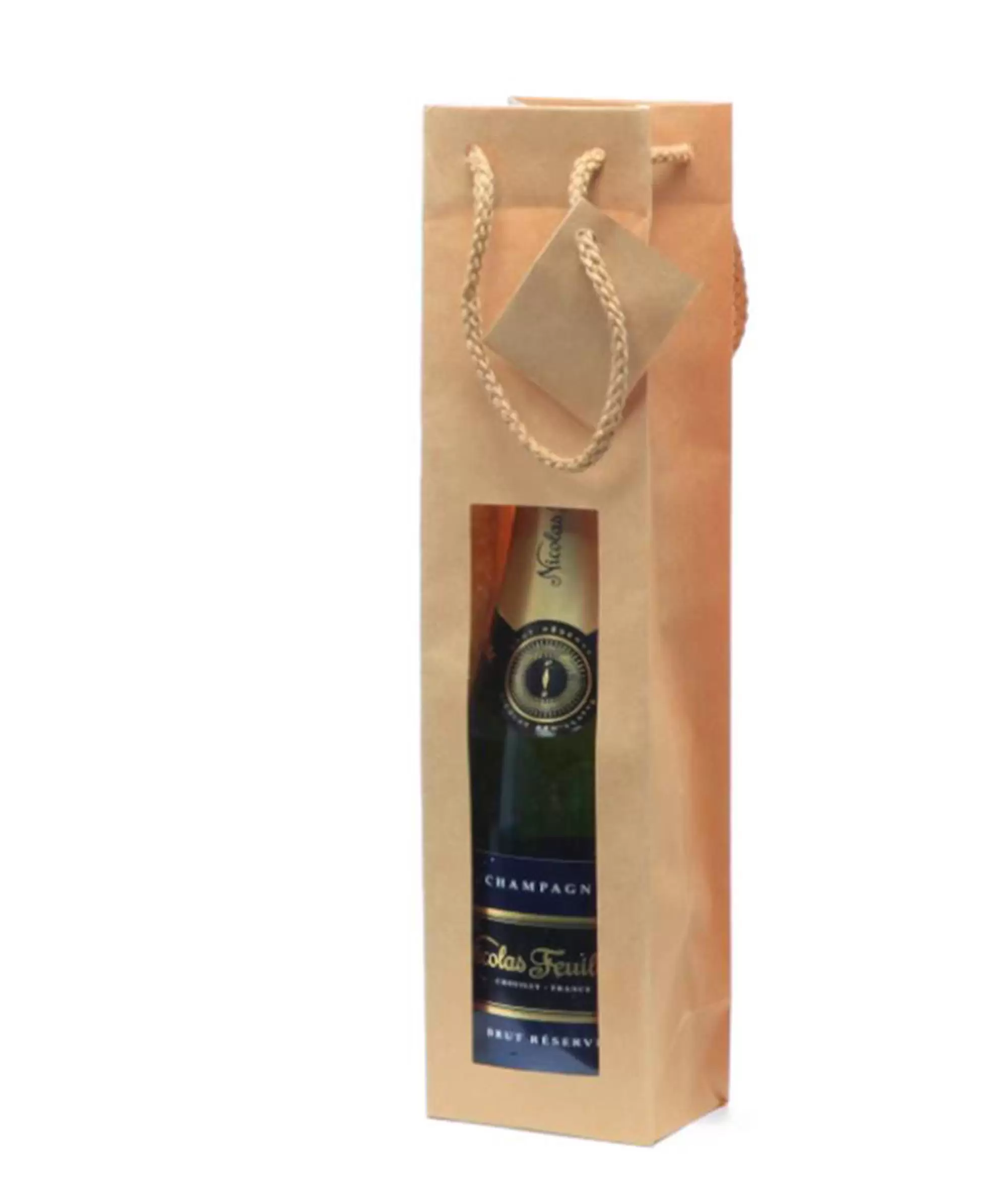 Sac en kraft 175 grs pour 1/2 bouteille et 50cl. Avec cordelière coton et livret perforé pour messages cadeaux
