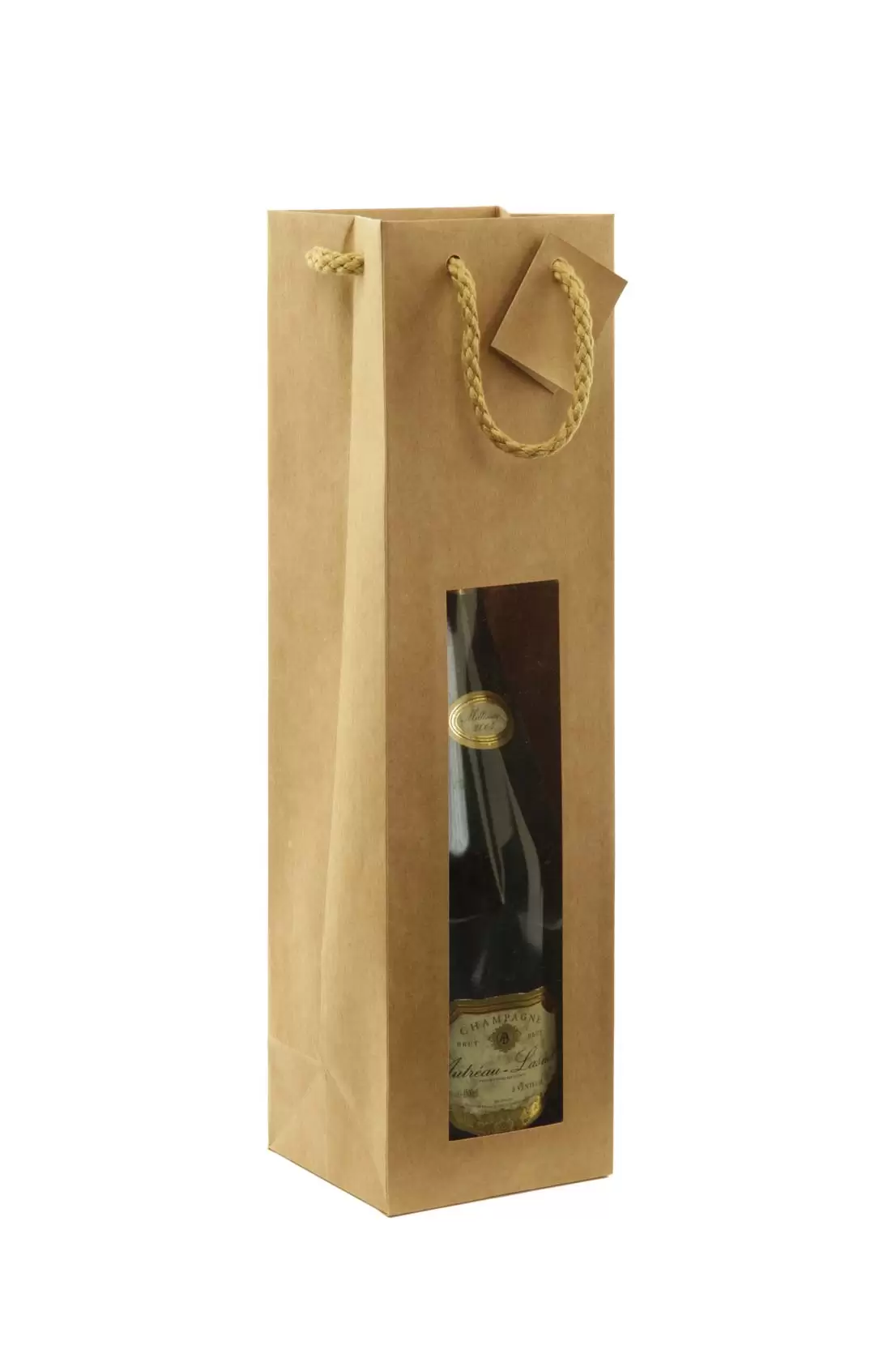 Sac en kraft 175 grs avec cordelière coton et livret perforé pour messages cadeaux. Pour bouteille Magnum 1,5 litre (type Champagne, Bordeaux, Bourgogne)